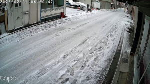 2026年02月08日 10時19分 日曜日 天気 小雪 気温 0℃。